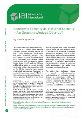 Economic Security as ‘National Security’ – An Unacknowledged Déjà-vu?
