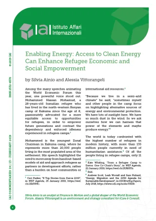 [11] Gita Bhardwaj and Owen Grafham, “Why Access to Energy Can Empower Refugees”, in Chatham House Expert Comments, 6 August 2018, https://www.chathamhouse.org/node/37408.