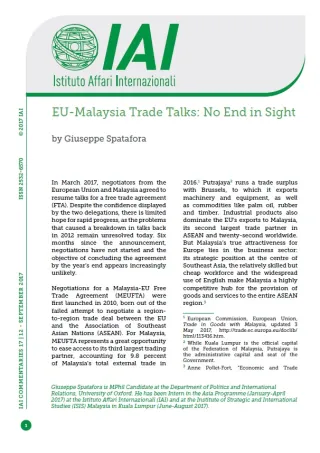 [6] Christopher Napoli, “The Political Economy of an EU-Malaysia FTA”, in Journal of Southeast Asian Economies, Vol. 30, No. 2 (August 2013), p. 213-227.