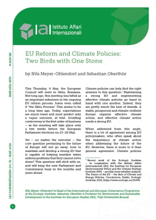 [1] Recent work of the Ecologic Institute – in cooperation with the Istituto Affari Internazionali (IAI), the Institute for European Environmental Policy and the Climate Strategy Institute 2050 – provide more detailed analysis: The Future of the EU – the Role of Climate and Energy Policies. Conclusions, Berlin, Ecologic Institute, 2019, https://www.ecologic.eu/16455.