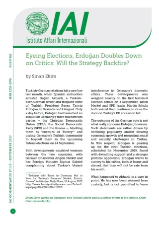 [1] “Erdoğan tells Turks in Germany Not to Vote for ‘Turkey’s Enemies’ Merkel, Schulz, Greens”, in Hürriyet Daily News, 18 August 2017, http://www.hurriyetdailynews.com/Default.aspx?pageID=238&nID=116905.
