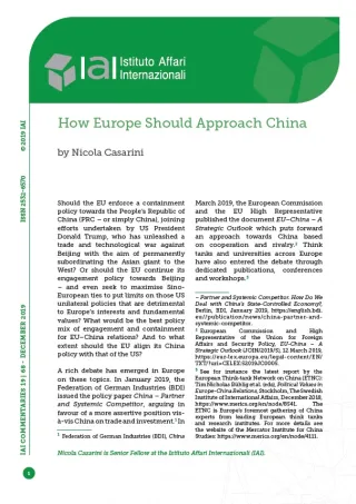 [6] Nicola Casarini, “Defend, Engage, Maximise: A Progressive Agenda for EU–China Relations”, in FEPS Policy Papers, October 2019, https://www.feps-europe.eu/resources/publications/696.