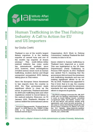 Human Trafficking in the Thai Fishing Industry: A Call to Action for EU and US Importers