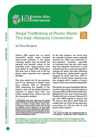 Illegal Trafficking of Plastic Waste: The Italy–Malaysia Connection