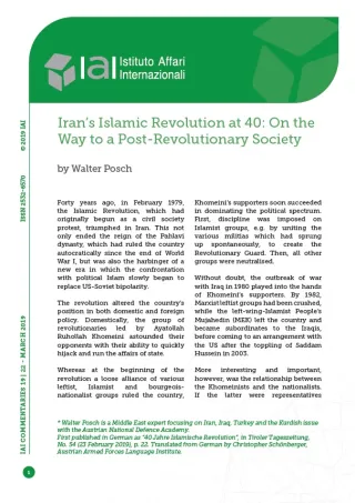 First published in German as “40 Jahre Islamische Revolution”, in Tiroler Tageszeitung, No. 54 (23 February 2019), p. 22. Translated from German by Christopher Schönberger, Austrian Armed Forces Language Institute.