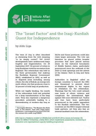 [6] David M. Halbfinger, “Israel Endorsed Kurdish Independence. Saladin Would Have Been Proud”, in The New York Times, 22 September 2017, https://nyti.ms/2jQnHOt.
