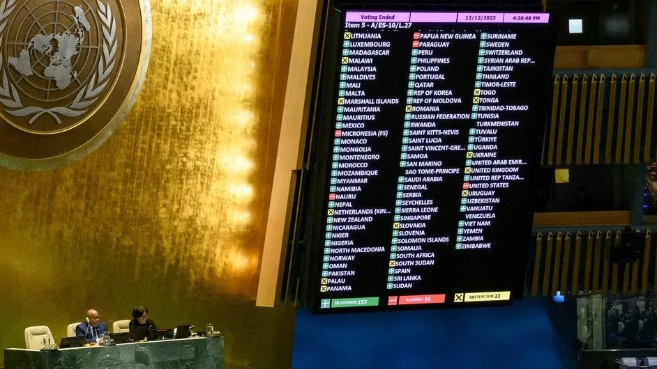 Source: United Nations, UN General Assembly Adopts Gaza Resolution Calling for Immediate and Sustained ‘Humanitarian Truce’, 26 October 2023, https://news.un.org/en/story/2023/10/1142847.