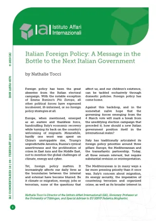 Italian Foreign Policy: A Message in the Bottle to the Next Italian Government