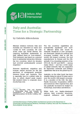 Italy and Australia: Time for a Strategic Partnership