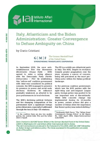 Italy, Atlanticism and the Biden Administration: Greater Convergence to Defuse Ambiguity on China