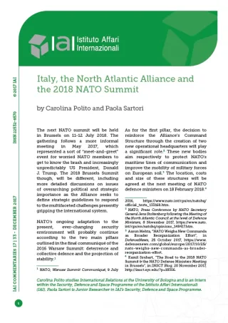 Italy, the North Atlantic Alliance and the 2018 NATO Summit