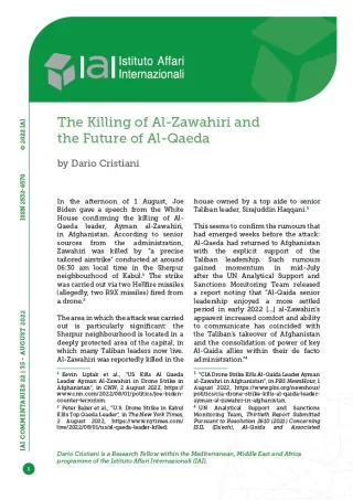 [1] Kevin Liptak et al., “US Kills Al Qaeda Leader Ayman Al-Zawahiri in Drone Strike in Afghanistan”, in CNN, 2 August 2022, https://www.cnn.com/2022/08/01/politics/joe-biden-counter-terrorism.