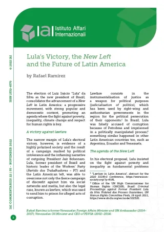 The birth of a New Left in Latin America that leads the battle against poverty and fights for economic sovereignty, human rights, the democratisation of society and respect for the environment should counterbalance the authoritarian governments in the region.[12] The victory of such a New Left in a country so crucial for Latin America as Brazil, together with Chile, as well as in Colombia – which is historically a sister nation with Venezuela – should buttress and renew calls for respect for human rights and full political liberties, as well as the return to the rule of law, in Venezuela. This will be fundamental for Latin America which cannot allow a country so important as Venezuela to remain under the control of a dictatorship.