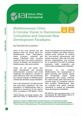 * Daniela De Lorenzo is MENA Political Analysis Manager at the International Affairs Department of Eni SpA. This article is part of a special series of IAI Commentaries entitled “Circular Cities in the Mediterranean: Unlocking the Potential for Sustainable Development”.