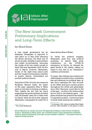 The New Israeli Government: Preliminary Implications and Long-Term Effects