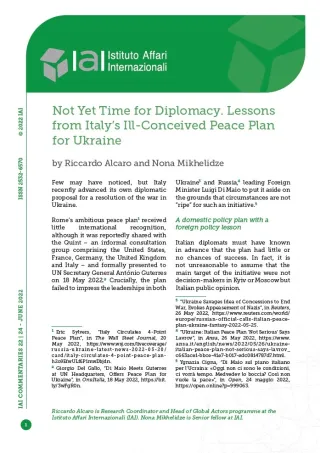 Not Yet Time for Diplomacy. Lessons from Italy's Ill-Conceived Peace Plan for Ukraine