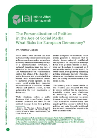 The Personalisation of Politics in the Age of Social Media: What Risks for European Democracy?