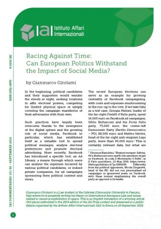 The recent European elections can serve as an example for growing centrality of Facebook campaigning, with costs and expenses mushrooming in the run-up to the vote. If we take Italy as a test case, Giorgia Meloni, leader of the far-right Fratelli d’Italia party, spent 19,000 euro on Facebook ad campaigns; Silvio Berlusconi and his Forza Italia party, 73,000 euro; the centre-left Partito Democratico (PD), 88,000 euro; and Matteo Salvini, head of the far-right anti-migrant Lega party, more than 90,000 euro.[1] This is certainly relevant data, but what are the actual risks associated with social media and their impact on European politics?