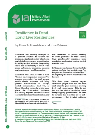 [6] Elena A. Korosteleva and Trine Flockhart (eds), “Resilience in EU and International Institutions”, Special Issue in Contemporary Security Policy, Vol. 41, No. 2 (February 2020), p. 153-360, https://www.tandfonline.com/toc/fcsp20/41/2.