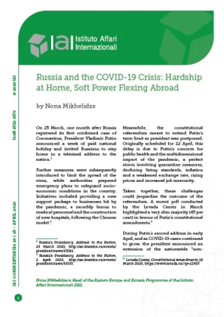 Russia and the COVID-19 Crisis: Hardship at Home, Soft Power Flexing Abroad