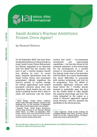 [2] Natasha Turak, “Saudi Arabia Announces Crucial Step Forward in Its Nascent Nuclear Power Plans”, in CNBC, 26 September 2023, https://www.cnbc.com/2023/09/26/saudi-arabia-announces-step-forward-in-its-nascent-nuclear-power-plans.html.