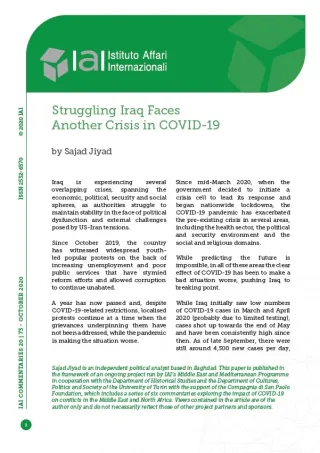 [11] Sajad Jiyad, “With ISIS Resurgent, Can Iraq’s New Government Avoid a Repeat of the Past?”, in World Politics Review, 3 June 2020, https://www.worldpoliticsreview.com/articles/28806.