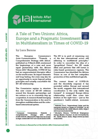 A Tale of Two Unions: Africa, Europe and a Pragmatic Investment in Multilateralism in Times of COVID-19