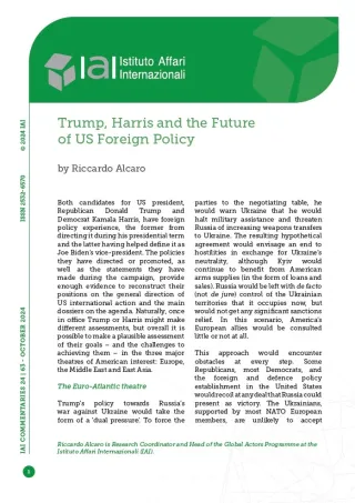 Harris’s strategy is geared towards continuing military support for Ukraine and only starting negotiations with Moscow with full involvement of Kyiv and participation of European allies. For this approach to work, Harris would first have to count on a majority in Congress willing to provide aid to Ukraine, which is tall order given the Republicans’ advantage in the Senate in this election cycle. In addition, it is not clear what Harris’s position on fundamental dimensions of conflict management is, from authorising Kyiv to use Western weapons to hit military targets in Russia (possible) to giving it a guarantee of early NATO accession (unlikely). These operational and strategic uncertainties risk weakening the Ukrainian resistance and dividing the Europeans, undermining the attempt to build a more stable framework for European security.
