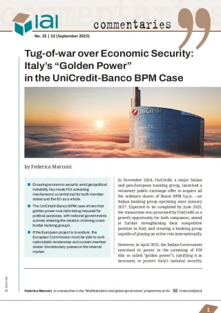 Tug-of-war over Economic Security: Italy’s “Golden Power” in the UniCredit-Banco BPM Case