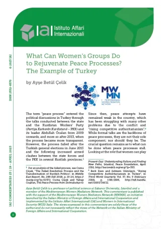 What Can Women’s Groups Do to Rejuvenate Peace Processes? The Example of Turkey