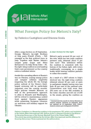 [19] Jason Horowitz, “Victorious Meloni Faces Early Test of Italy’s Resolve on Russia”, in The New York Times, 26 September 2022, https://www.nytimes.com/2022/09/26/world/europe/meloni-italy-russia-ukraine.html.