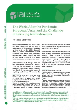 The World After the Pandemic: European Unity and the Challenge of Reviving Multilateralism
