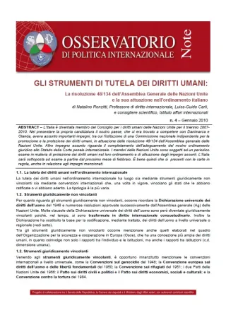 Gli strumenti di tutela dei diritti umani: la risoluzione 48/134 dell'Assemblea Generale delle Nazioni Unite e la sua attuazione nell'ordinamento italiano