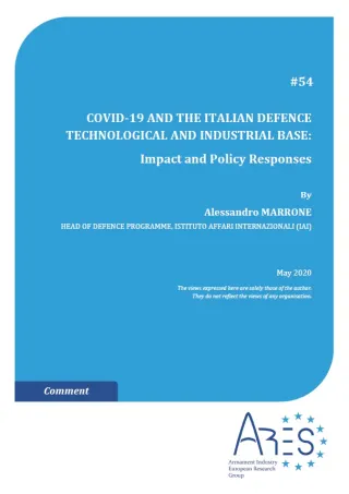 Italy was the first European country affected by COVID-19 and where the pandemic hit the hardest. Its impact on aerospace and defence industry includes short term damages and a mid-term negative pressure on the Ministry of Defence’s budget. The damages caused by the 52-day rigid lockdown have been only partially mitigated by the government’s economic support. Small and Medium Enterprises suffered the most. The unprecedented increase of Italy’s sovereign debt will push fiscal consolidation in the next years, thus impeding any increase of military spending towards NATO targets. As a result, the national DTIB will probably have to cope with limited government investments, hopefully channelled through EU defence initiatives.