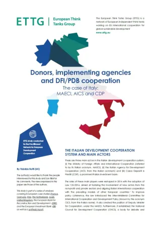 Donors, implementing agencies and DFI/PDB cooperation. The case of Italy: MAECI, AICS and CDP