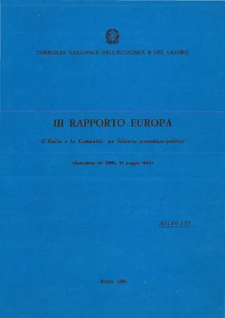 III rapporto Europa. L’Italia e la Comunità: un bilancio economico-politico. Allegati