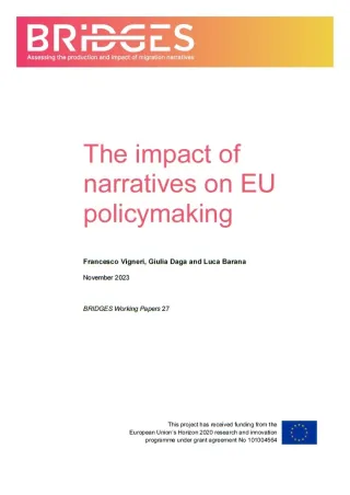 This report investigates the main migration narratives circulating on media, political debates, and policy venues within the European Union (EU) over the past decade. It focuses on two significant migration events: the 2015 "refugee crisis" and the 2022 activation of the Temporary Protection Directive for those fleeing Russian aggression against Ukraine. Specifically, the research aims to understand which narratives have shaped in the media, the EU political debate, and policymaking for each of the two cases, and assess to which extent and manner these have circulated across these three domains. To do so, it relies on a qualitative discourse analysis of more than a hundred texts produced by the EU institutions. This report presents the main results of such analysis. First, it provides an overview of the theoretical and methodological framework, and of the reflections that led to the case selection. Then, it offers a detailed analysis of the dominant narratives during the 2015 refugee crisis and the 2022 activation of the Temporary Protection Directive. Finally, it reflects on the circulation of narratives across the three arenas considered for the analysis, by paying attention to the pervasiveness and transformativity of these narratives, and ultimately evaluate their potential implications for policy output.