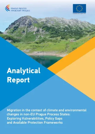 This analytical report examines the political challenges and responses to migration driven by climate and environmental changes (MECC) across the non-EU Prague Process states (non-EU PPS). It offers evidence of cases substantiating the climate change-migration nexus and elaborates on the impact that climate change can have on migration movements. It investigates the role of the EU in supporting climate adaptation in non-EU PPS, while reflecting on the impact that latent and ongoing conflicts, often interrelated with water scarcity and mismanagement of (already scant) natural resources, may have in exacerbating climate vulnerability and migration movements. The report illustrates relevant national protection practices covering a wide range of people, both nationals and non-nationals, affected by climate and environmental factors. It also analyses the protection frameworks available to MECC at the national and international level. Non-EU PPS are recommended to engage more at the supranational level to develop comprehensive and uniform policy responses addressing specific climate and environmental challenges forcing people out of their homes, as well as related protection needs. States should improve climate adaptation and mitigation actions in their internal and external policy dimensions and enhance regional cooperation on climate and environmental matters. Finally, they should consider developing or reinforcing concerted actions, regional cooperation, and transboundary water agreements to properly and fairly manage shared water resources, their use and distribution. This in turn would deepen regional integration, while avoiding the escalation of tensions or conflicts over natural resources.