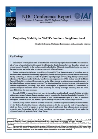 Rapporto della conferenza internazionale “La Nato e le crisi a sud dell'Europa: proiettare stabilità nel vicinato meridionale della Nato”, Roma, 14 marzo 2017. Pubblicato anche in italiano: Proiettare stabilità nel vicinato a sud della Nato (Documenti IAI 17|14).
