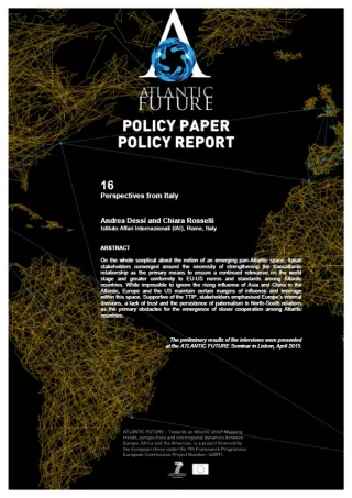 Paper prodotto nell'ambito del progetto Atlantic Future, settembre 2015. I risultati preliminari sono stati presentati a un seminario Atlantic Future tenutosi a Lisbona nell'aprile 2015.