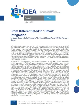 Governance theories through goal setting and the SMART approach can help the “smart” application of differentiated integration, ensuring its positive impact on the integration process. This would allow the introduction of new terminology, an updated concept and a new narrative. If it is really implemented in an appropriate way, in accordance with predetermined goals and requirements, if it contributes to the positive development of the integration project, if it overcomes obstacles and solves problems, if it achieves positive results – why not call it “smart integration”?