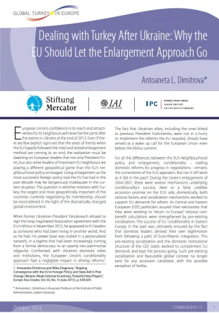 Gli sviluppi in Ucraina a fine 2013 sembrerebbero segnalare come sia giunto a termine il monopolio dell'Ue sul potere trasformativo. Il presidente Putin e altri leader di importanti vicini dell'Ue stanno giocando un gioco geopolitico diverso da quello dell'Ue. È giunto il momento di rivalutare l'approccio dell'Ue nei confronti dei suoi vicini e alleati. Cosa implica questa rivalutazione per le relazioni tra l'Ue e la Turchia? Questo breve saggio afferma che i negoziati di adesione non sono più in grado di creare il quadro più adatto per le relazioni Ue-Turchia, e questo principalmente per tre motivi: le dinamiche del processo di adesione, il carattere e il contenuto dell'acquis, e il più ampio quadro geopolitico in Europa.