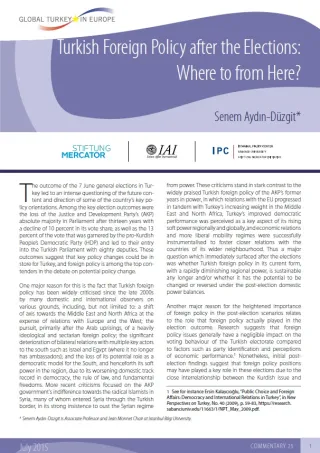Turkish Foreign Policy after the Elections: Where to from Here?