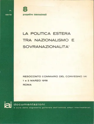 Il mondo internazionale è agitato da tendenze opposte e simultanee, le quali spingono da una parte verso la restaurazione dei valori del nazionalismo e dall’altra verso l’instaurazione di integrazioni sovranazionali. Poichè questo tema costituisce il filo conduttore di una notevole parte delle sue ricerche, Io IAI ha organizzato, in occasione della sua seconda assemblea annuale un convegno di studio nel quale sono stati discussi in sedute plenarie ed in commmissioni di studio i risultati di alcune ricerche preparate dall’Istituto.