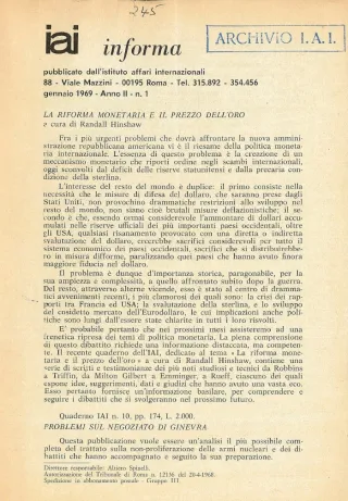 Roma, IAI, Vol. II, n. 1 (gennaio 1969)-n. 8-9 (novembre-dicembre 1969)