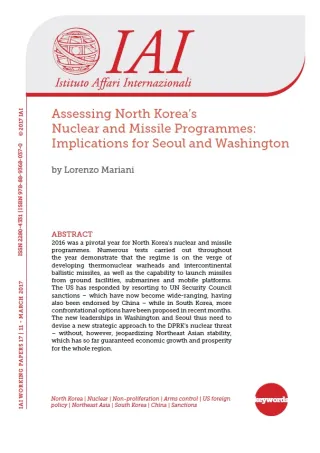 Il 2016 è stato un anno cruciale per il programma nucleare e quello missilistico della Corea del Nord. I numerosi test effettuati durante l’anno dimostrano che il regime è sul punto di sviluppare testate termonucleari e missili balistici intercontinentali, nonché la capacità di lanciare missili da strutture sulla terraferma, dai sottomarini e da piattaforme mobili. Gli Stati Uniti hanno reagito ricorrendo alle sanzioni del Consiglio di Sicurezza delle Nazioni Unite – che essendo state approvate anche dalla Cina sono ormai ad ampio raggio – mentre nella Corea del Sud sono state proposte negli ultimi mesi opzioni più aggressive. Le nuove leadership a Washington e Seoul devono di conseguenza mettere a punto un nuovo approccio strategico alla minaccia nucleare della Corea del Nord, senza tuttavia compromettere nel nord-est asiatico quella stabilità che ha finora garantito la crescita economica e la prosperità per l’intera regione.
