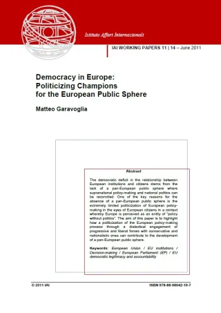 Democracy in Europe: Politicizing Champions for the European Public Sphere