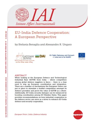 Paper presentato alla conferenza “Moving Forward the EU-India Security Dialogue: Traditional and Emerging Issues” tenutasi a Roma il 21 novembre 2016 nell'ambito dell'omonimo progetto guidato dall'Istituto Affari Internazionali (IAI) e da Gateway House: Indian Council on Global Relations (GH). Il progetto fa parte della EU-India Think Tank Twinning Initiative, finanziata dall'Unione europea.