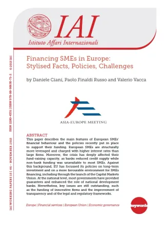 Documento preparato per il seminario Asem “Financing SMEs in Asia and Europe”, Roma, 29-30 ottobre 2015.