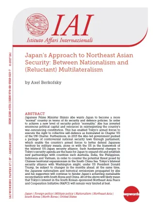 Paper presentato alla conferenza internazionale “Trust-building in North East Asia and the Role of the EU” organizzata a Roma il 21 ottobre 2016 dall'Istituto Affari Internazionali (IAI) con il sostegno della Korea Foundation (KF).